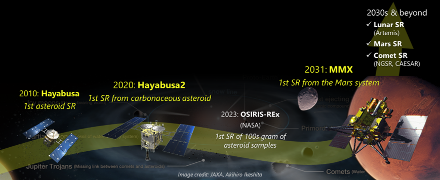 [1] A. Tsuchiyama et al. (2011) Science 333, 1125-1128, 10.1126/science.1207807. [2] T. Nakamura et al. (2023) Science 379, abn8671, 10.1126/science.abn8671. [3] D.S. Lauretta, et al. (2017) Space Sci Rev 212, 925–984. https://doi.org/10.1007/s11214-017-0405-1 [4] K. Kuramoto et al. (2022) Earth, Planets and Space, 74, 12. 10.1186/s40623-021-01545-7 [5] B. K. Muirhead et al. (2020) Acta Astronautica, vol. 176, pp. 131–138, doi: 10.1016/j.actaastro.2020.06.026. [6] J. Helbert et al. (2023) LPI Contributions, 2806, 1989. [7] J. Helbert et al. (2024) SPIE13144, https://doi.org/10.1117/12.3027601