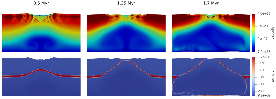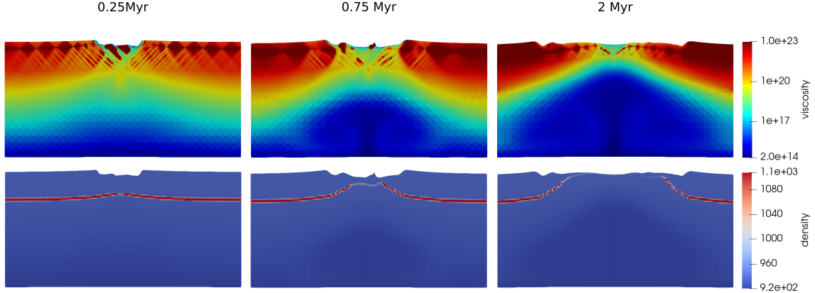 The assumptions of a fixed amount of material causes an overall decrease in the mass loss with time, and the density perturbations inside the fracture associated with the phase transition treatment produce a superimposed short-term temporal variability (Figure 1).