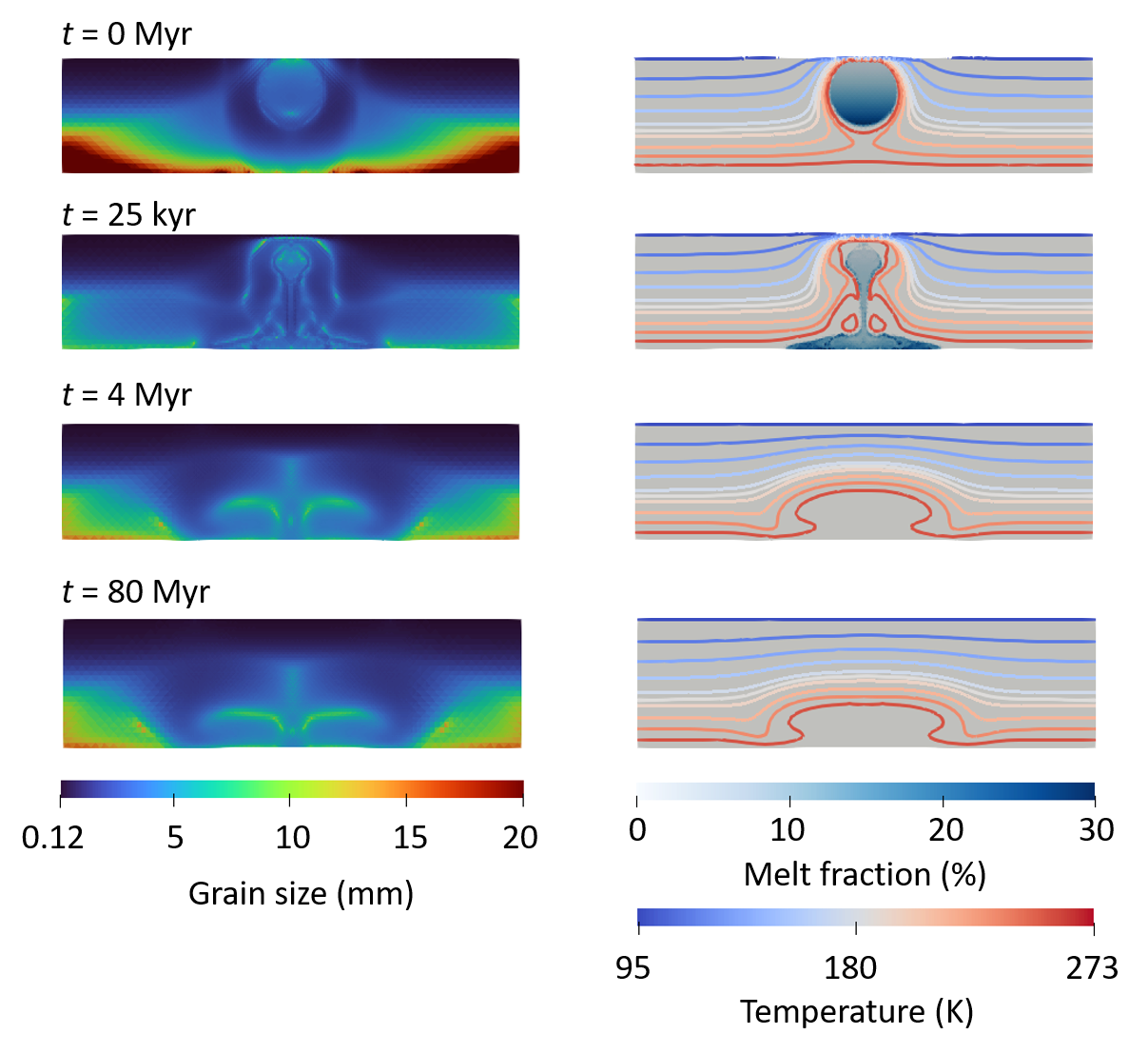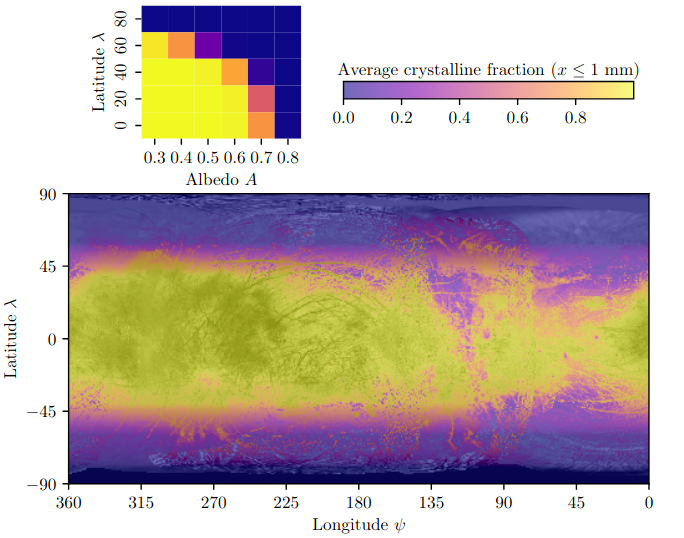 The thermal conduction with the cold Enceladus’ surface is efficient and favors the deposition of surface ice, with a symmetrical distribution around the fracture. This allows the evaluation of the deposition rate as a function of the distance from the emitting region (Figure 2). The obtained values are consistent with those reported in the literature [4].