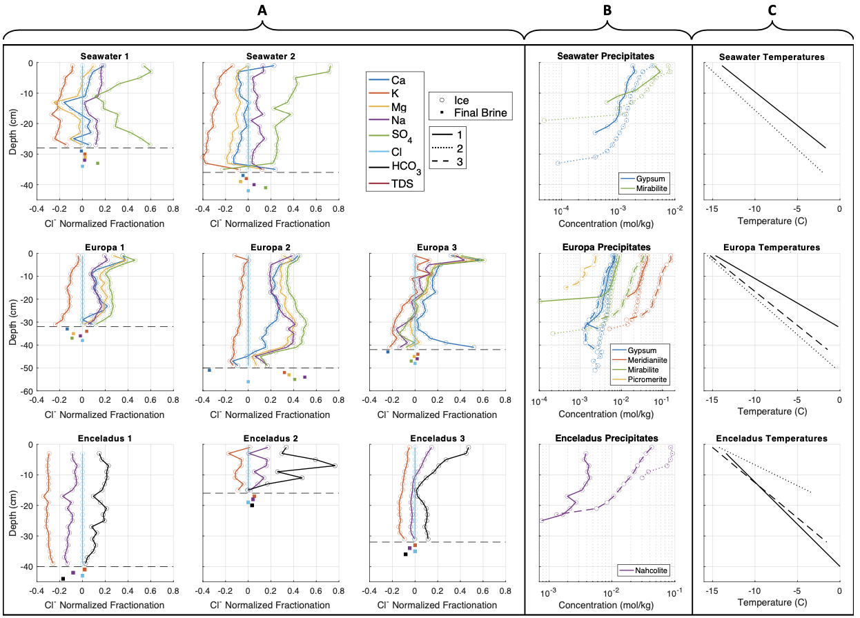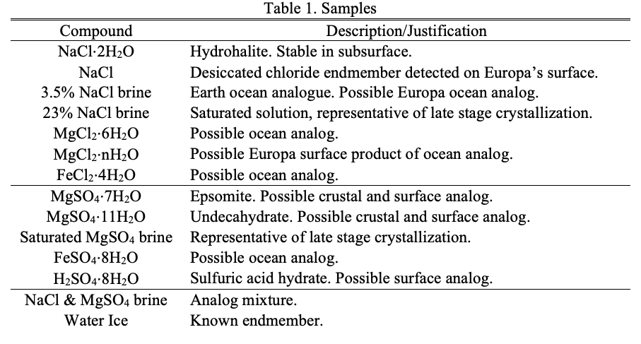 Our data show that in such regions distinguishing between different NaCl phase assemblages holds great promise in reconstructing the formational cooling rate of salty surface materials. Connecting surface composition to ice shell processes is a next major frontier in understanding the geology of icy worlds, a challenge that can be addressed by combining laboratory insights with new observations from upcoming planetary missions including NASA’s Europa Clipper and ESA’s JUICE.